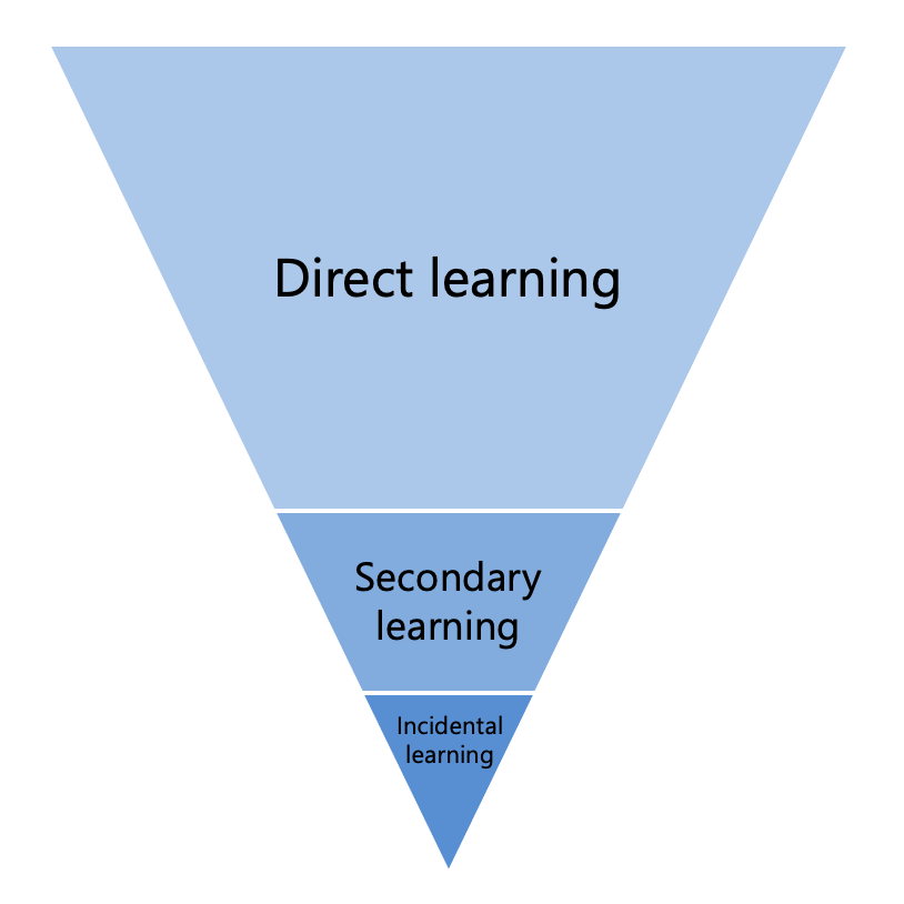 The opportunity to pick up information using incidental learning is very limited for deafblind persons, so the learning triangle becomes inverted. The typical way of learning does not occur naturally and needs to be supported through direct learning.